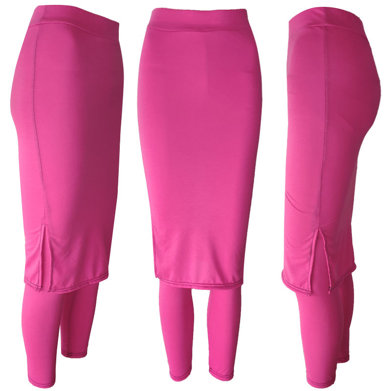 2025年越境ECサイト向け、大きいサイズのフェイクツーピースレギンス、女性用秋冬用、外側にスリット入り、ヒップを包み込む、ぽっちゃりさん向け春秋用スカートパンツ