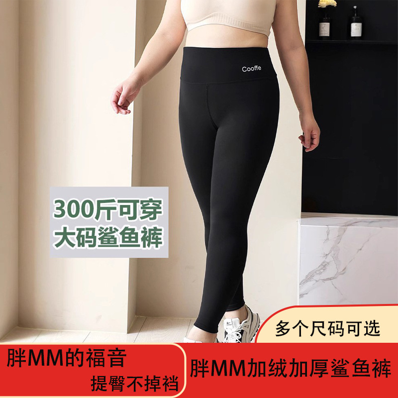 ファットMM限定ベルベットシャークパンツレディースハイウエストレギンス厚くて暖かい150kgスリムヨガバービーパンツ