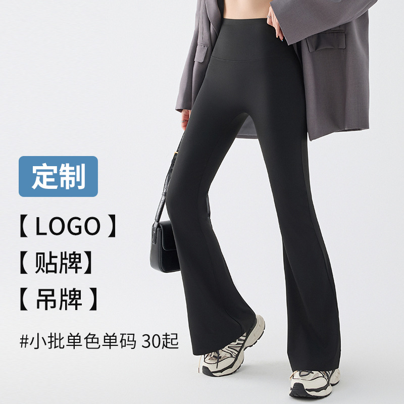 カスタマイズ可能なロゴプリントパンツ、シャークフレアパンツ、おなかコントロール、ハイウエスト、恥ずかしくないライン、女性用外履き馬蹄パンツ、新しいスタイル