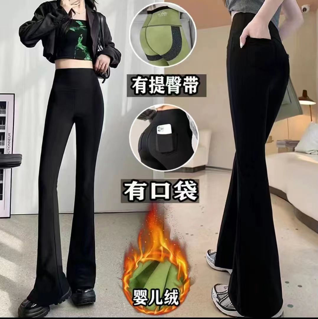 後ろポケット付きフレアパンツ、バービーパンツ、お腹を引き締めるタイトフィットレギンス、女性用秋冬モデル、外でも着用可能、シャークパンツ、ポケットデザイン