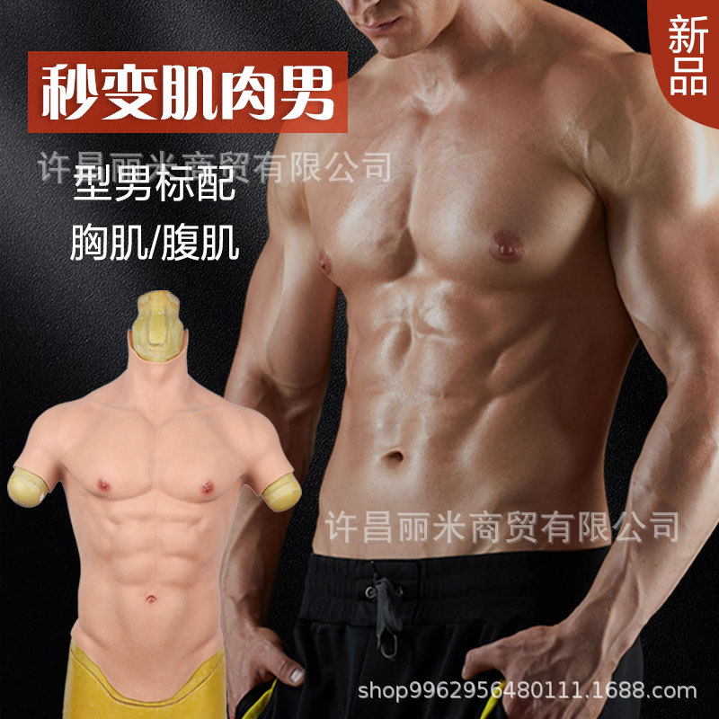 コミックコンベンション向けの男性用筋肉衣装、偽腹筋小道具、コスプレ用神器、偽胸筋シリコン衣装、厚手シリコン衣装