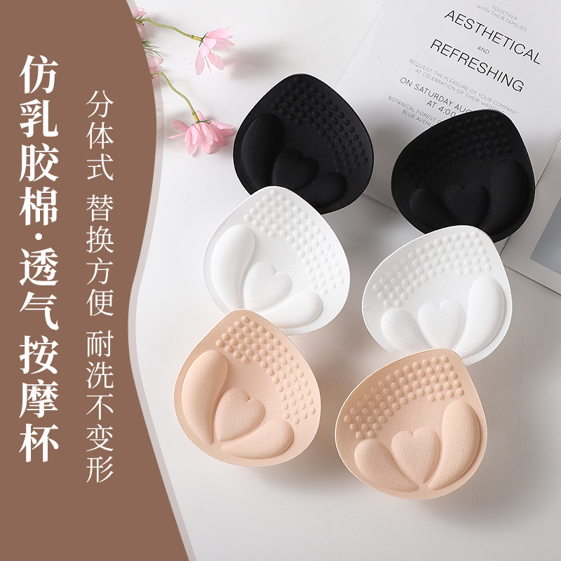 アワビ型胸パッド、ラテックスコットン胸パッド、厚め分割型美背胸パッド、ブラジャー用外側膨らみ対策パッド、分割型交換用