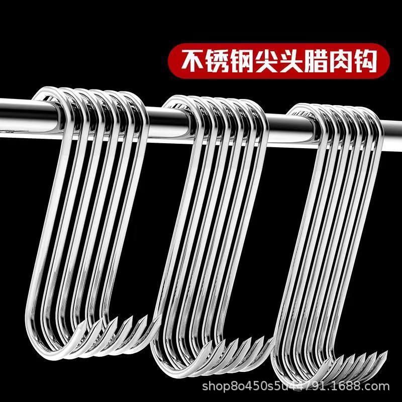 大型太字s型日焼けベーコンフック中実ステンレスフック豚肉ソーセージダックフック肉sフック先