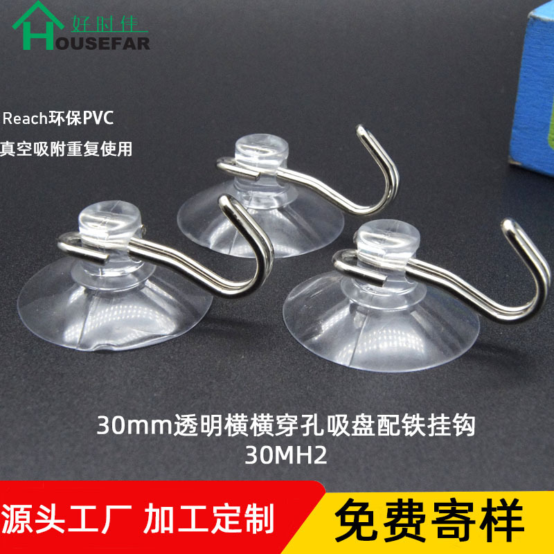 穿孔PVC透明真空强力玻璃吸盘塑料挂钩毛绒玩具婚庆车花店日用品