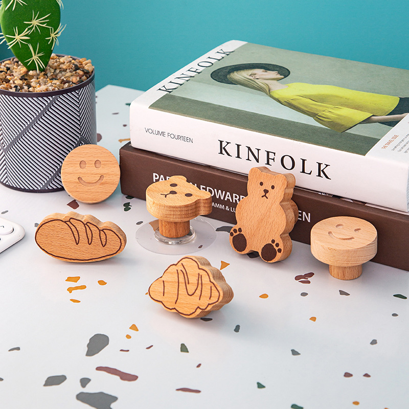 Ins風のぬいぐるみの熊の木製のフックの子供の部屋の壁の壁掛けの装飾のタンスの扉のタイルは穴を開けないでフックをつけます。
