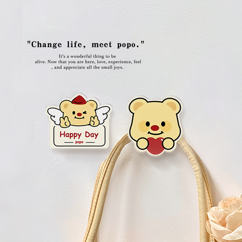 漫画抱き熊プラグフック穴なし傷跡なし貼り付けプラグフック壁掛けキッチン熊プラグフック