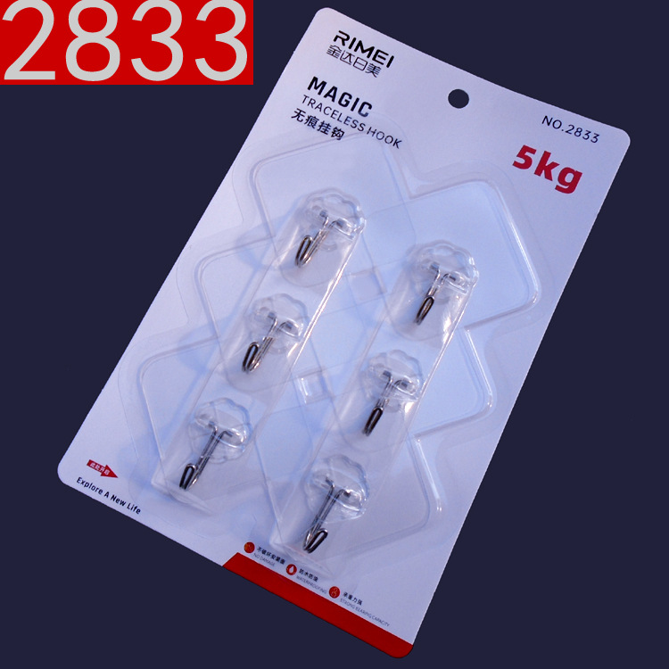 金達日美2833無痕フック透明フック6個入り釘なし金属フック家庭事務用品