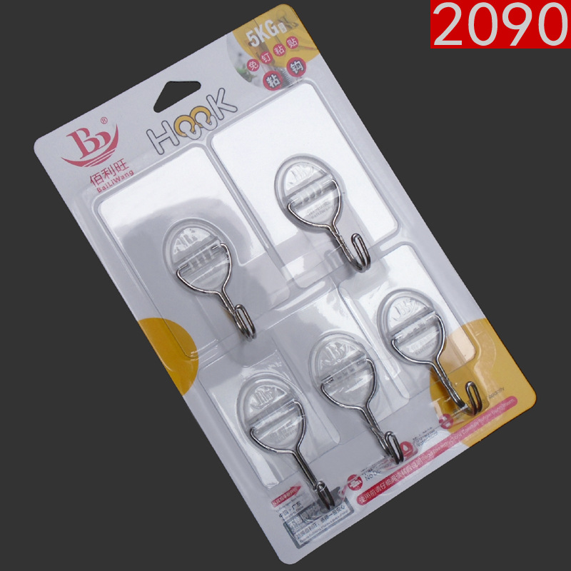 佰利旺2090粘着フック無釘貼り付け金属服フック家庭用オフィス5個透明壁フック