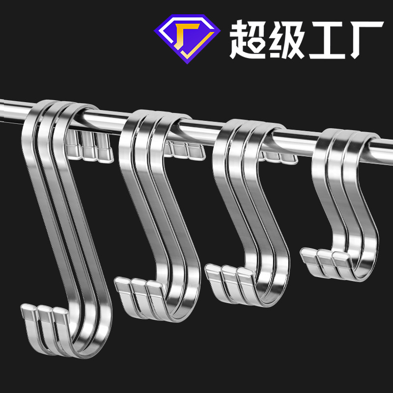ステンレスsフックsフック強力sフック太めソリッドバスルームキッチンフックs型肉フックフラットフック卸売