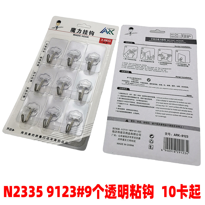N2335 9123 #9个透明スティッキーフックフック强力スティッキー透明壁挂け洋服フック台所创り
