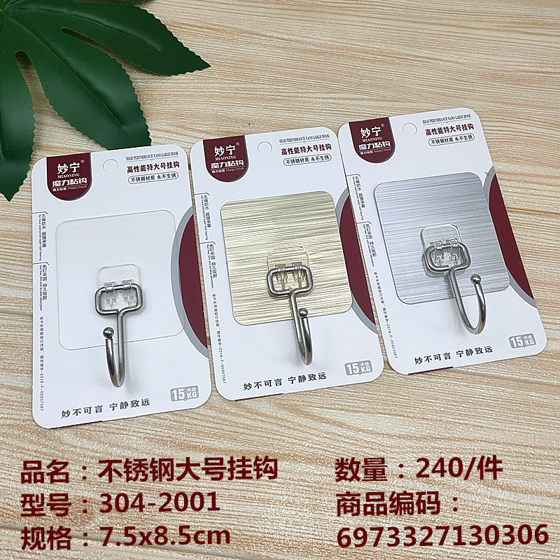 臨沂妙寧無痕フックブリスター包装単独で強力無釘レーザー金大サイズステンレスフック