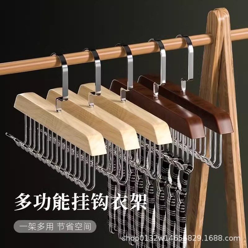実木ハンガー8フックハンガー下着ストラップ収納神器服服服収納棚専用ハンガー