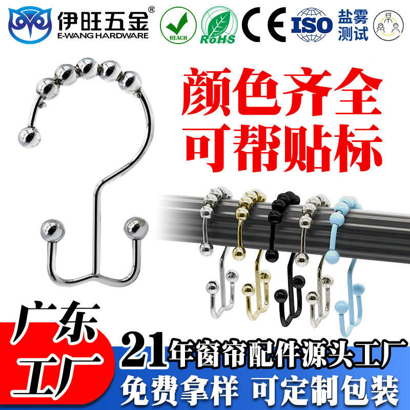 イワン防錆山字型シャワーカーテンフック ステンレス製山字フック 静音スムーズ5ボールカーテンフック