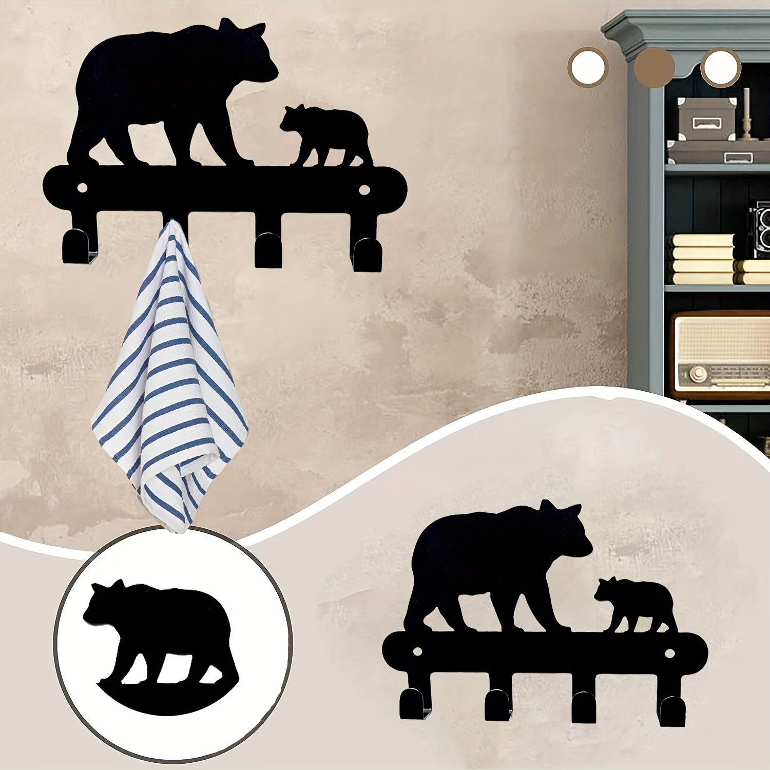 穴なしベアーフックビスコース壁掛け多目的浴室トイレタオルドア後玄関服キーフック