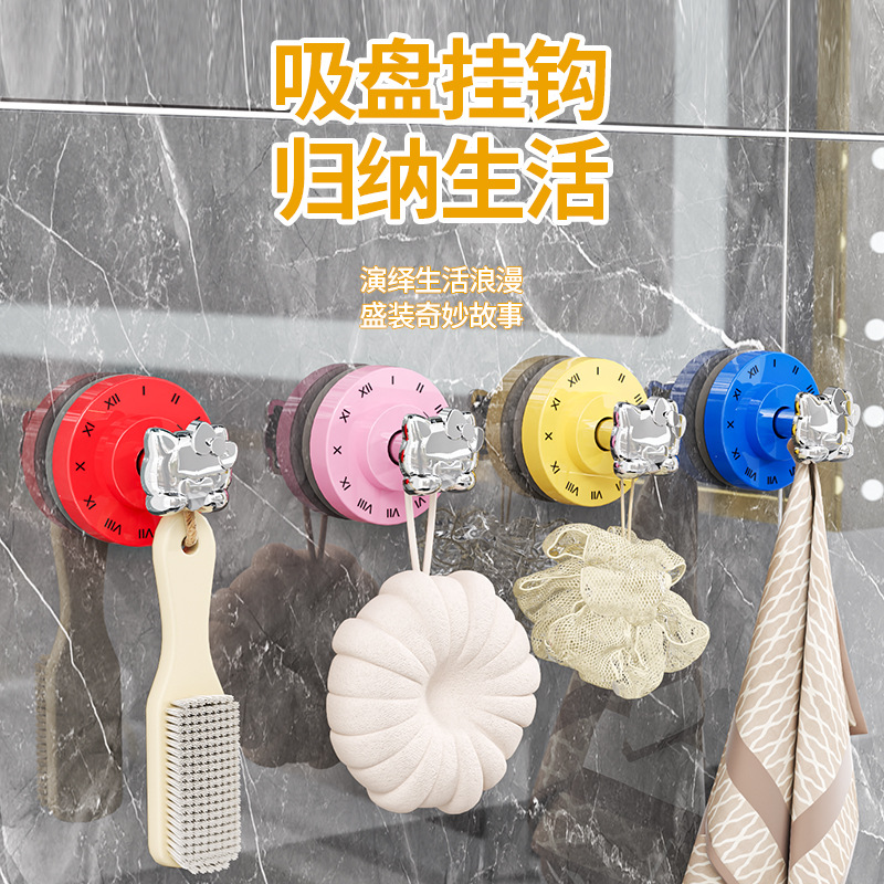 kt 猫銀メッキ吸盤フック粘着フックパンチフリー真空強力な耐荷重キーフック多目的