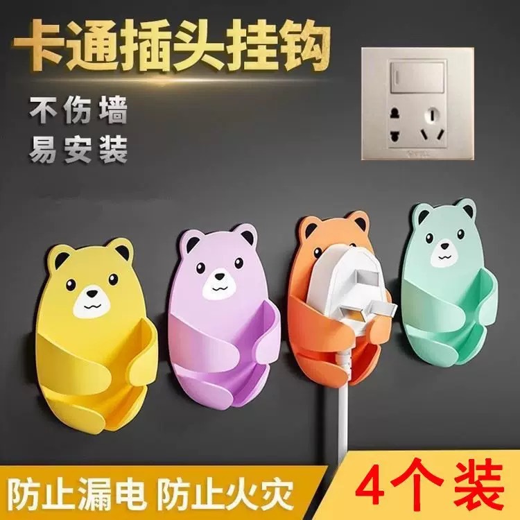 アニメ抱き熊穴なしコンセント固定フックキッチン壁掛け強力無痕フック電線プラグ収納