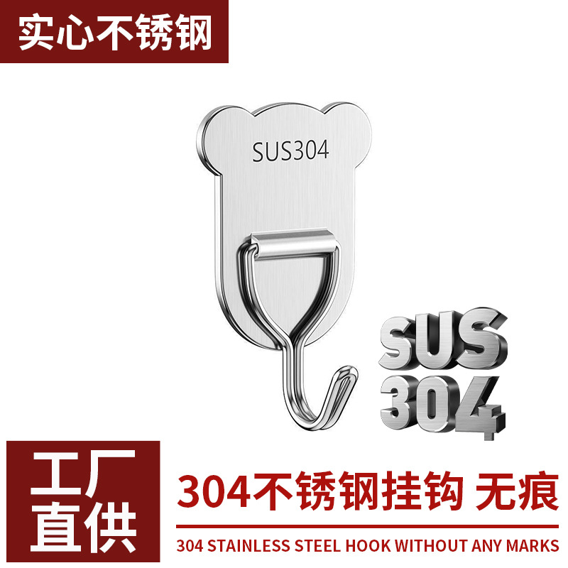 304ステンレスフック強力フック穴なしベアーシングルフック台所浴室金属フードフック
