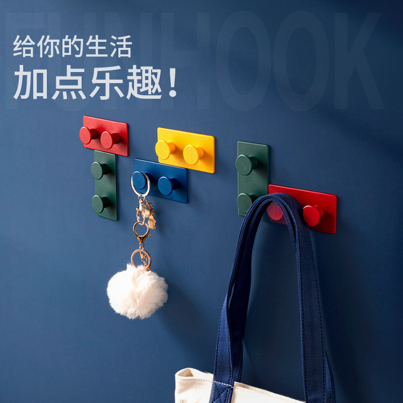 クリエイティブな積み木フック、シンプルな粘着フック、壁プラグキーフック、パンチフリー、痕跡のない多機能フック