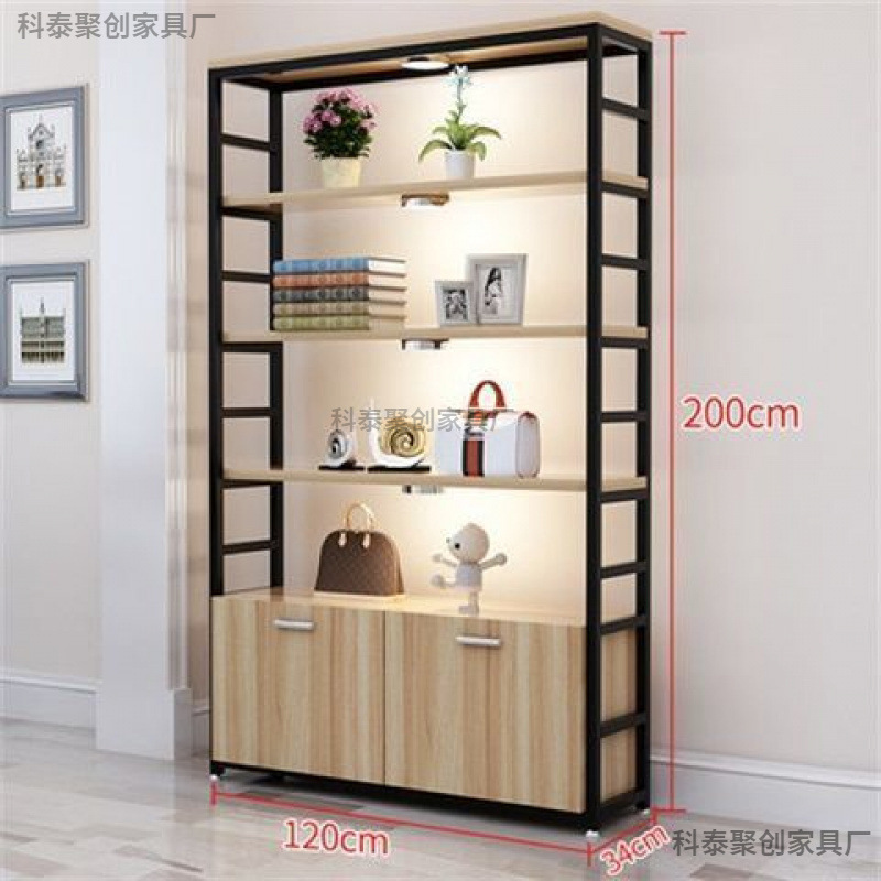 棚ディスプレイキャビネットスチール木製収納ラック調節可能なディスプレイラック床置きシンプルなスーパーマーケット多層収納キャビネット