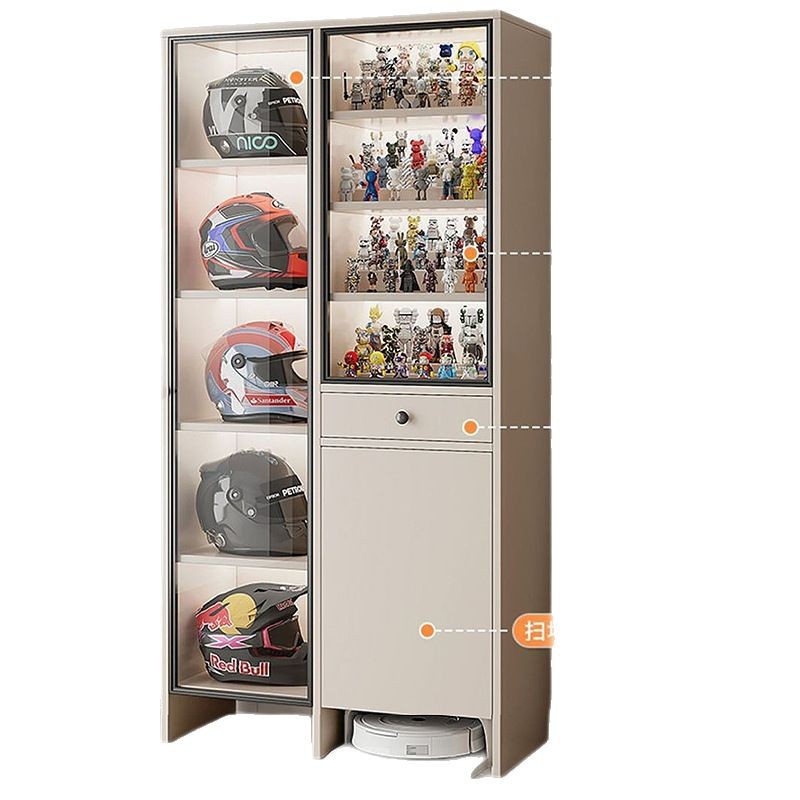 無垢材レゴブラインドフィギュアディスプレイキャビネットガラスドア掃除ロボット収納キャビネットヘルメット収納キャビネット