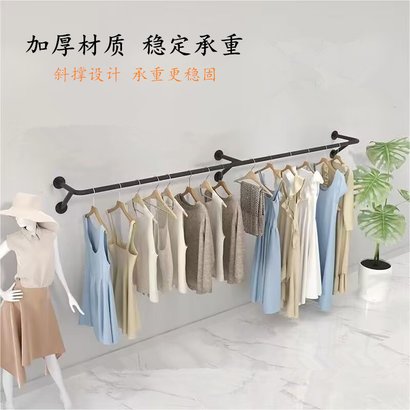 アイアンアート衣料品店の壁掛けハンガー、横掛けディスプレイラック、婦人服・子供服壁掛けハンガー、壁掛け衣料品展示 J&