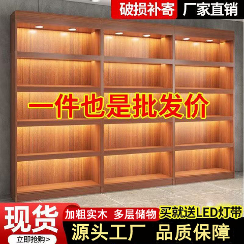 無垢材本棚一体型壁面ガラスドア床置き防塵本棚ライト高級完全密閉装飾品手作り収納キャビネット