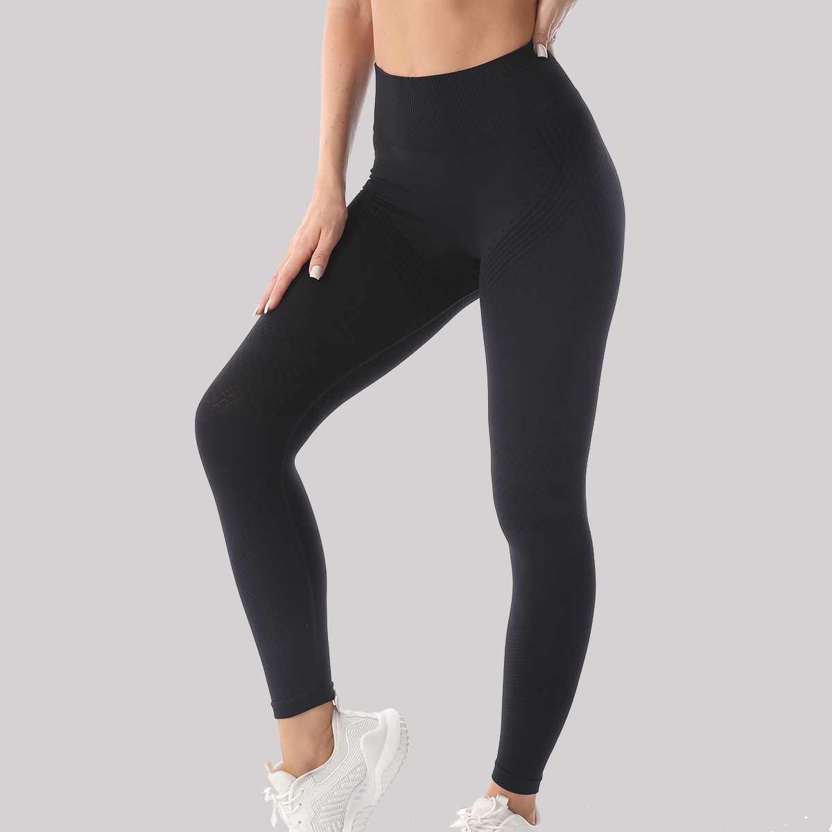 女性用シームレスニットヨガパンツラインヒップアップスポーツタイツ女性用ハイウエスト弾力性フィットネスパンツランニング9分