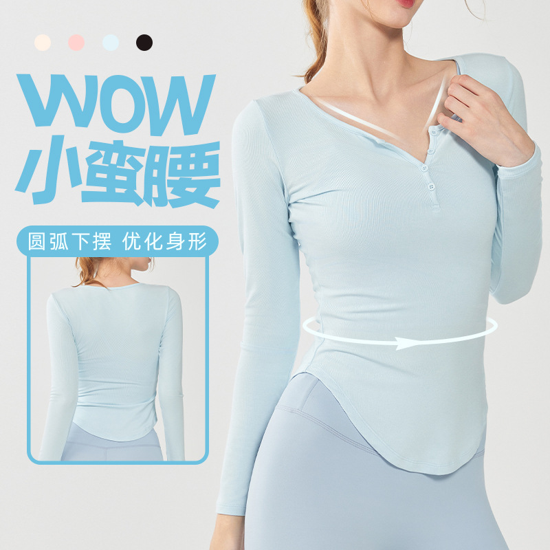 秋冬vネックヨガ服長袖純色シンプルトレーニングフィットネススポーツ上着アウトドアランニング通気性速乾衣