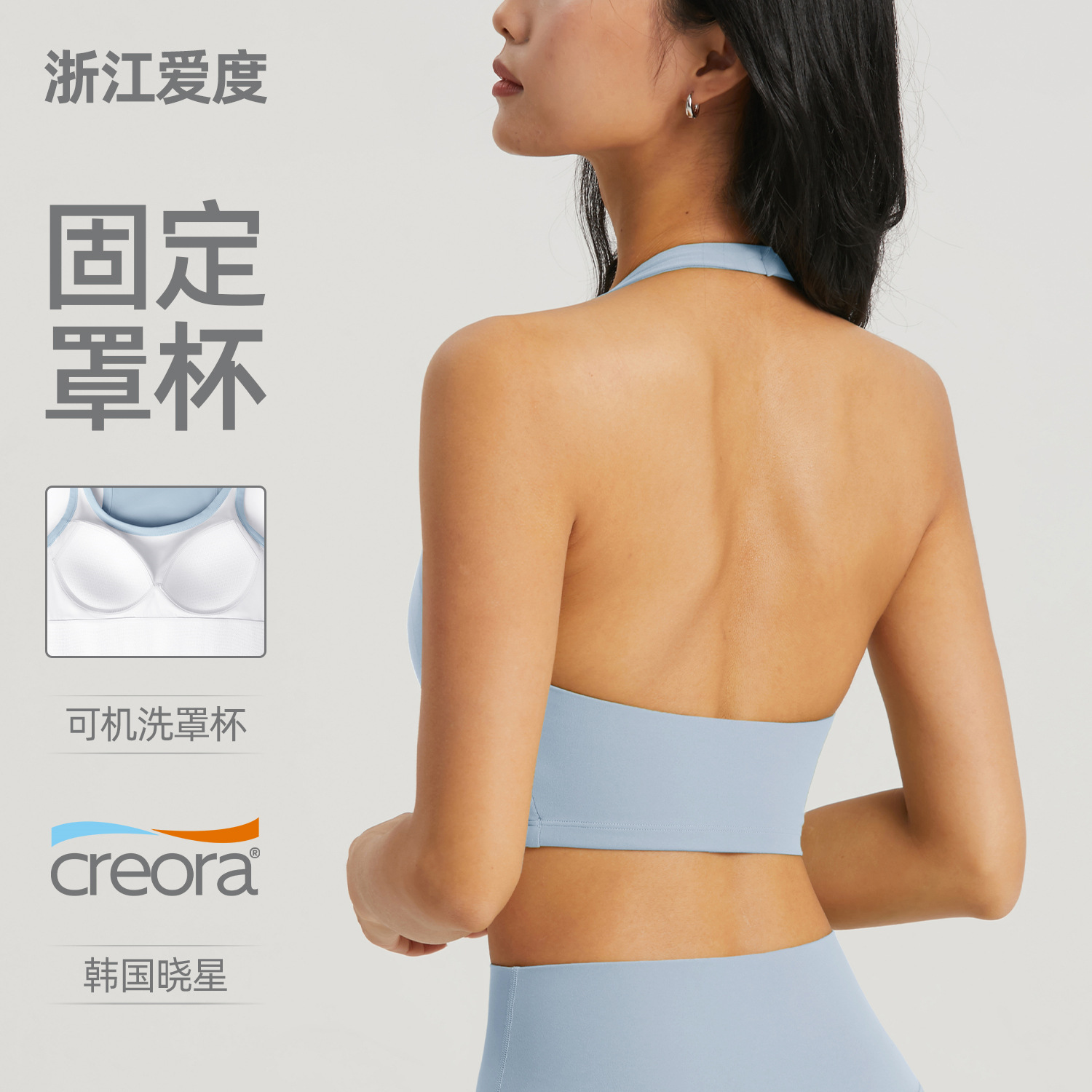 速卖通高弾性消光ナイロンシームレスヨガホルターネックブラ、美背スポーツブラ、女性用外着スポーツブラ