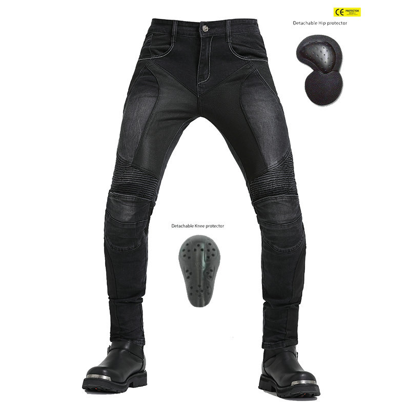 夏の新型の通気性の機関車の騎行のズボンのオートバイのジーパンのレースのカジュアルな修身の弾力性の網の目の騎行のズボン
