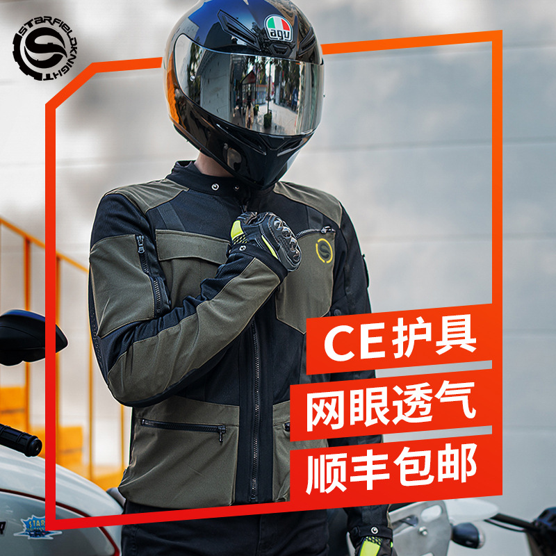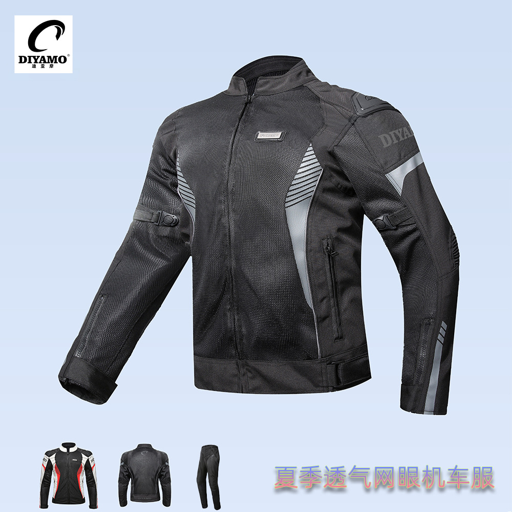 新型バイク騎手服秋夏メッシュ騎手服重機関車転倒防止服車ファンレース服保護具付き