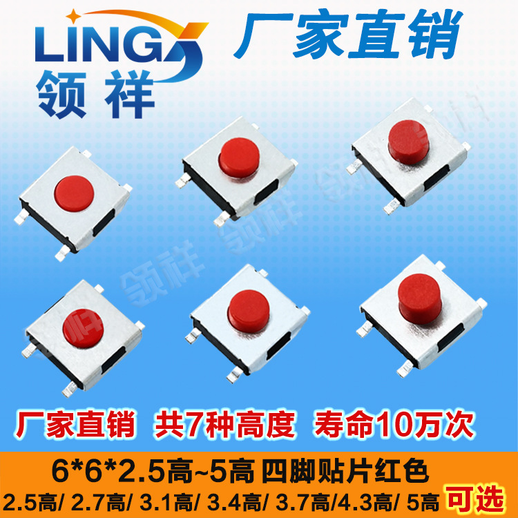 襟祥 | 6*6*2.5/2.7/3.1/3.4/3.7/4.3タッチスイッチ4足の赤いボタンスイッチ