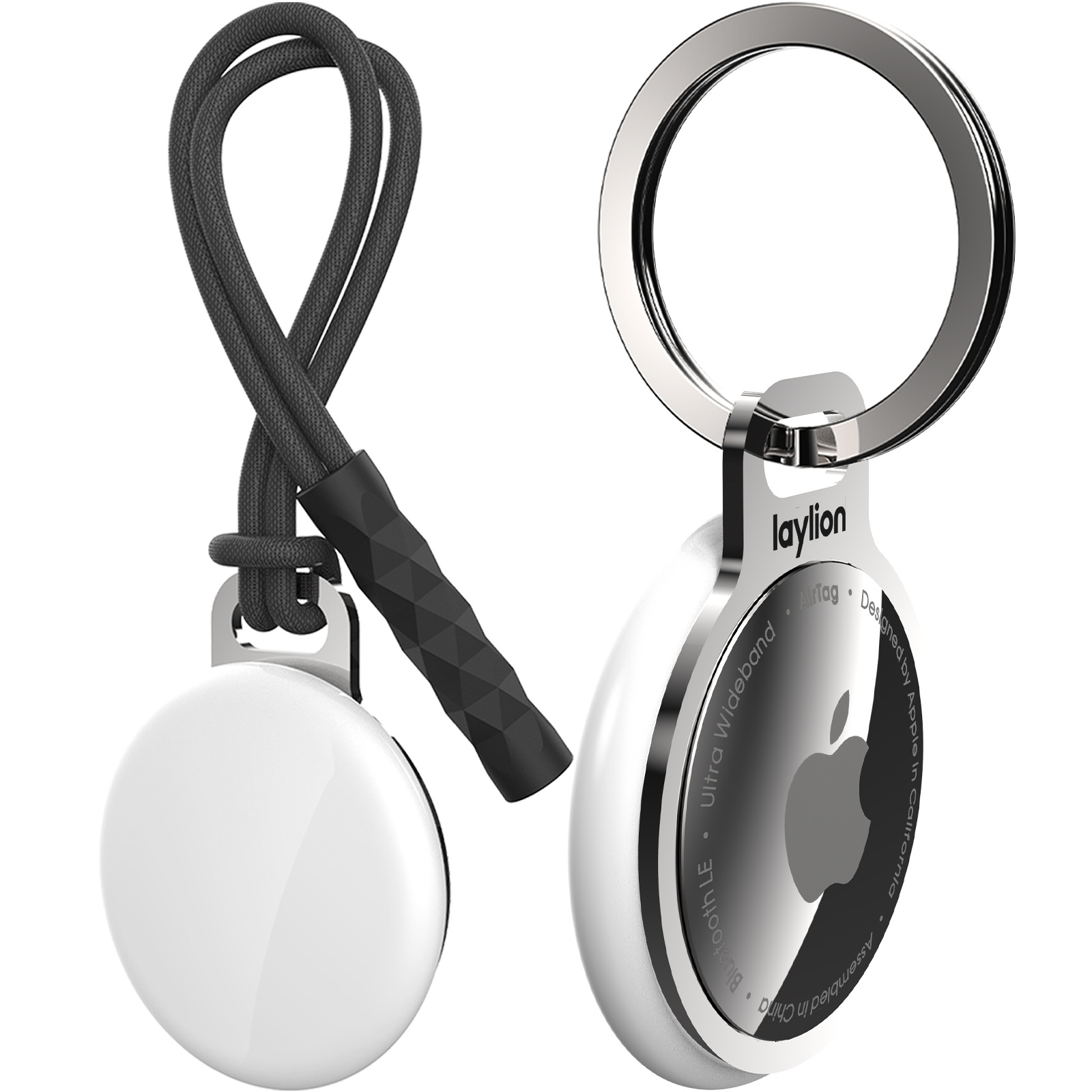 Laylionステンレス鏡面金属保護ケース固定リングひも付きキーホルダーairtag保護カバー