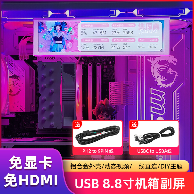 8.8インチIPS筐体副スクリーンTYPEC直接パソコン監視副スクリーンPC監視usb副スクリーンAIDA6