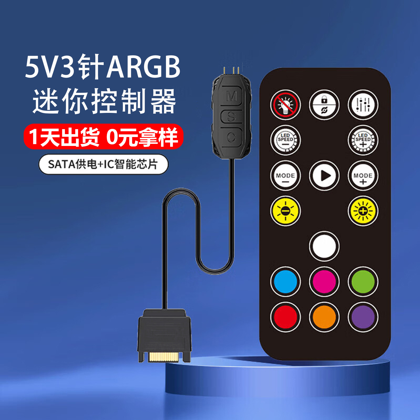 コンピュータ 5V3 ピン ARGB ボタン コントローラ シャーシ ファンから SATA 電源、リモコン付きミニ ハブ