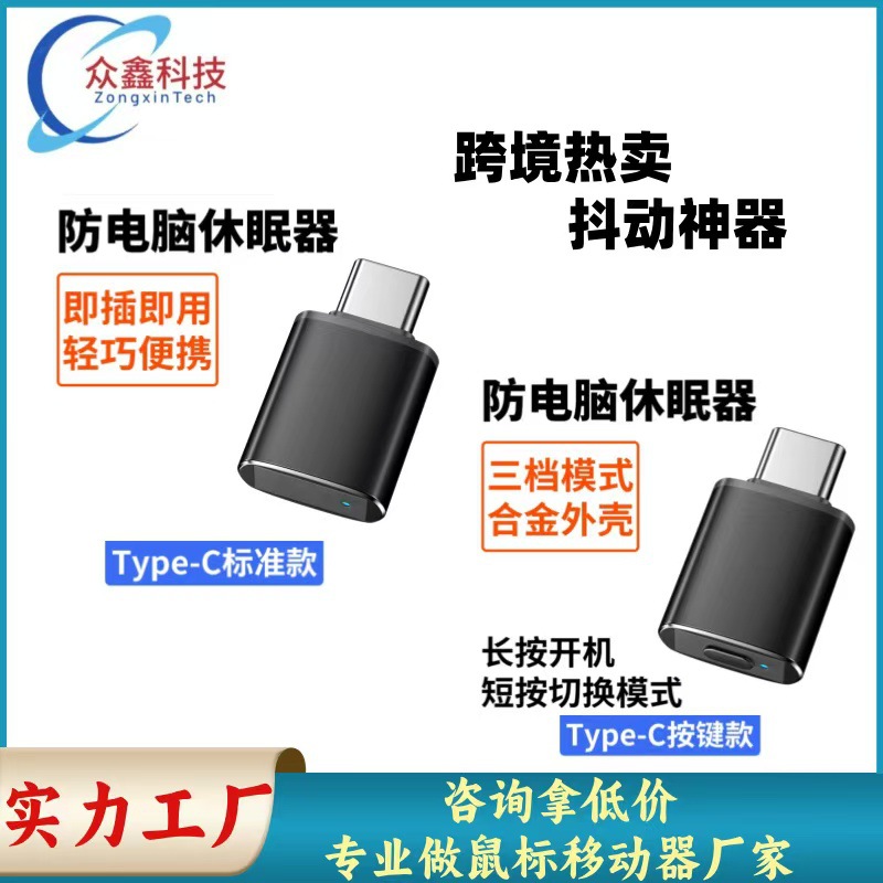 クロスボーダーUSBインターフェースマウスモバイラーType-C、ボタン付き、コンピューターのスリープ防止、デジタルアクセサリー、金属製シェル