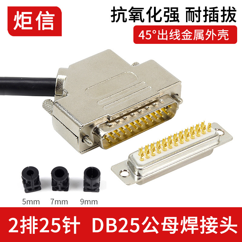 45度DB25プラグ2列25ピン金属ハウジング溶接ヘッド大電流ソリッドピンコネクタテールセット付き