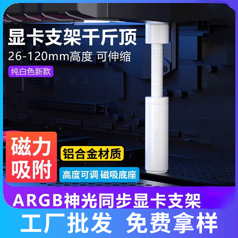 グラフィックカードのスタンドの伸縮する金の白色の3070グラフィックカードのジャッキの全アルミニウムの磁気RTX4090サポートフレームの曲げ防止は調整できます。