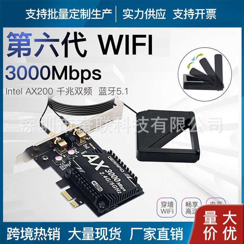 デュアルバンド3000m wifi6 ax200デスクトップeコマースワイヤレスカードは、pciレシーバーbluetooth 5.1を内蔵しています