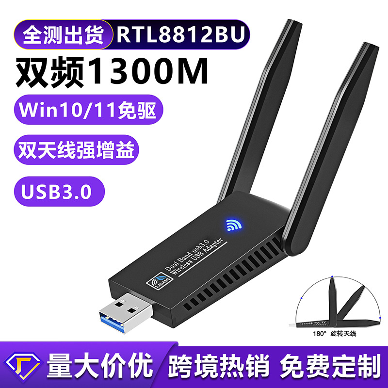 人気1300Mデュアル周波数ギガWIFI信号受信送信機RTL8812チップUSB3.0ワイヤレスカード