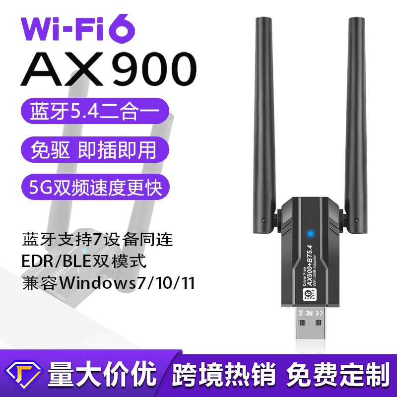 WiFi6デュアルバンド5GワイヤレスカードAX900Mドライブレスusb bluetooth 5.4 2 in 1デスクトップコンピュータアダプタ
