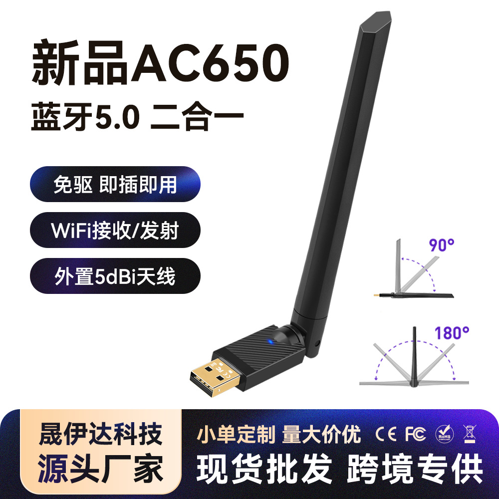 ドライバー不要のワイヤレス ネットワーク カード 650Mbps デュアルバンド Bluetooth ツーインワン コンピュータ USB 外部 WiFi ネットワーク受信および送信