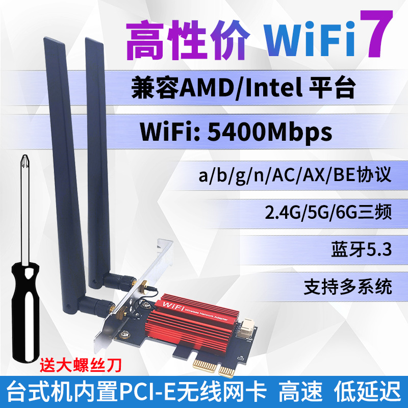 MT7925 WIFI7 2.4G/5G/6G トリプルデュアルバンドデスクトップ内蔵ワイヤレスネットワークカード PCIE Bluetooth 5.3