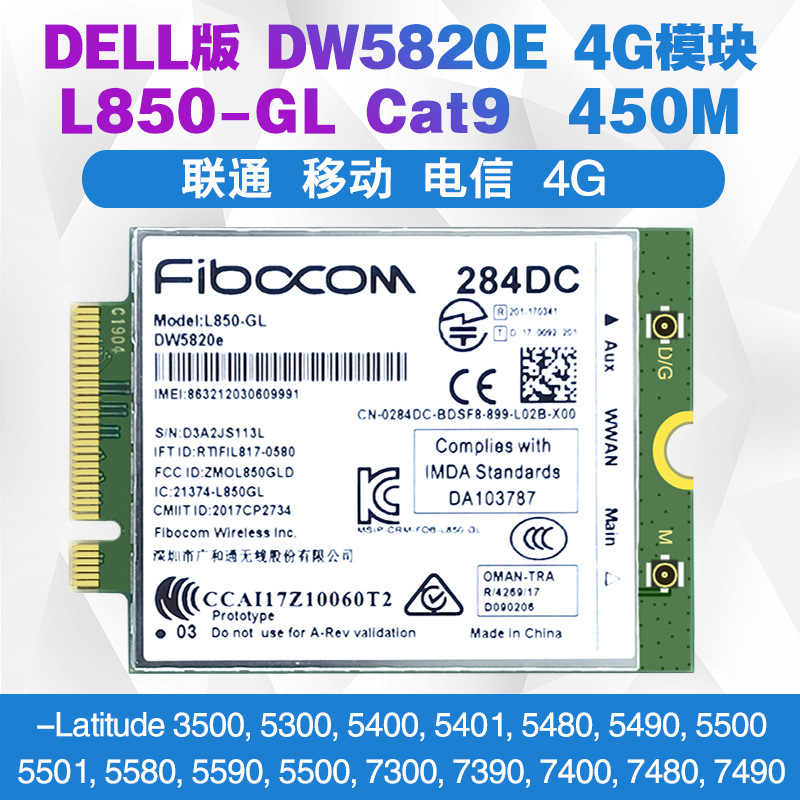 デル3540 3541 5400 L850-GL移動連通通信lte 4gモジュールdw5820e