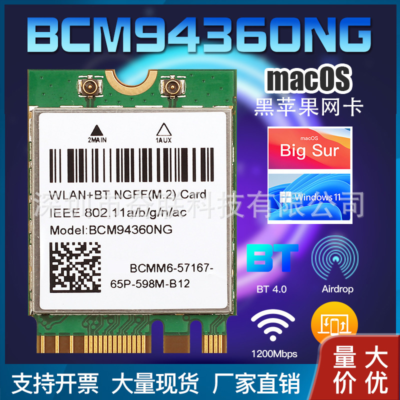 博通BCM94350 1200M 5Gデュアルバンド・ギガビット内蔵無線lanカードminipci4. 1 bluetooth
