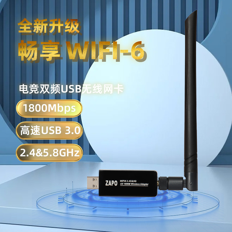 wifi6 ドライブフリーワイヤレスゲームネットワークカード USB3.0 デュアルバンド AX1800M 高速 5GWiFi デスクトップレシーバー