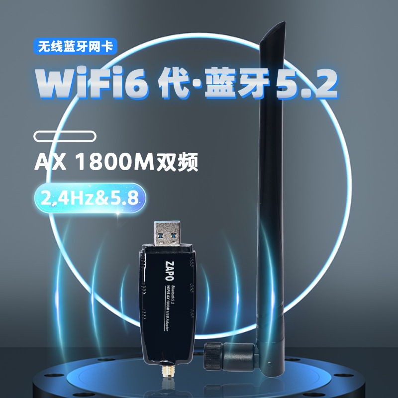 ZAPOブランドRTL8852ワイヤレスwifi6 bluetoothネットワークカード受信機デスクトップコンピュータusb bluetoothネットワークカード