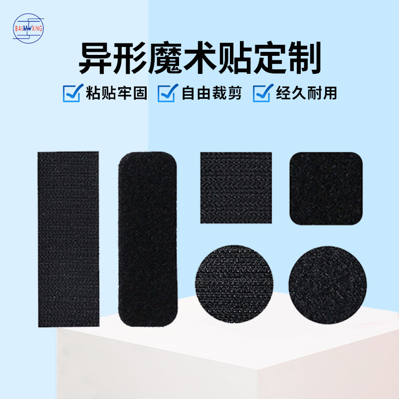 カスタム粘着マジックテープ、型抜き加工、フック面、マット面、丸型、角丸、スライス、自己粘着、分割粘着テープ