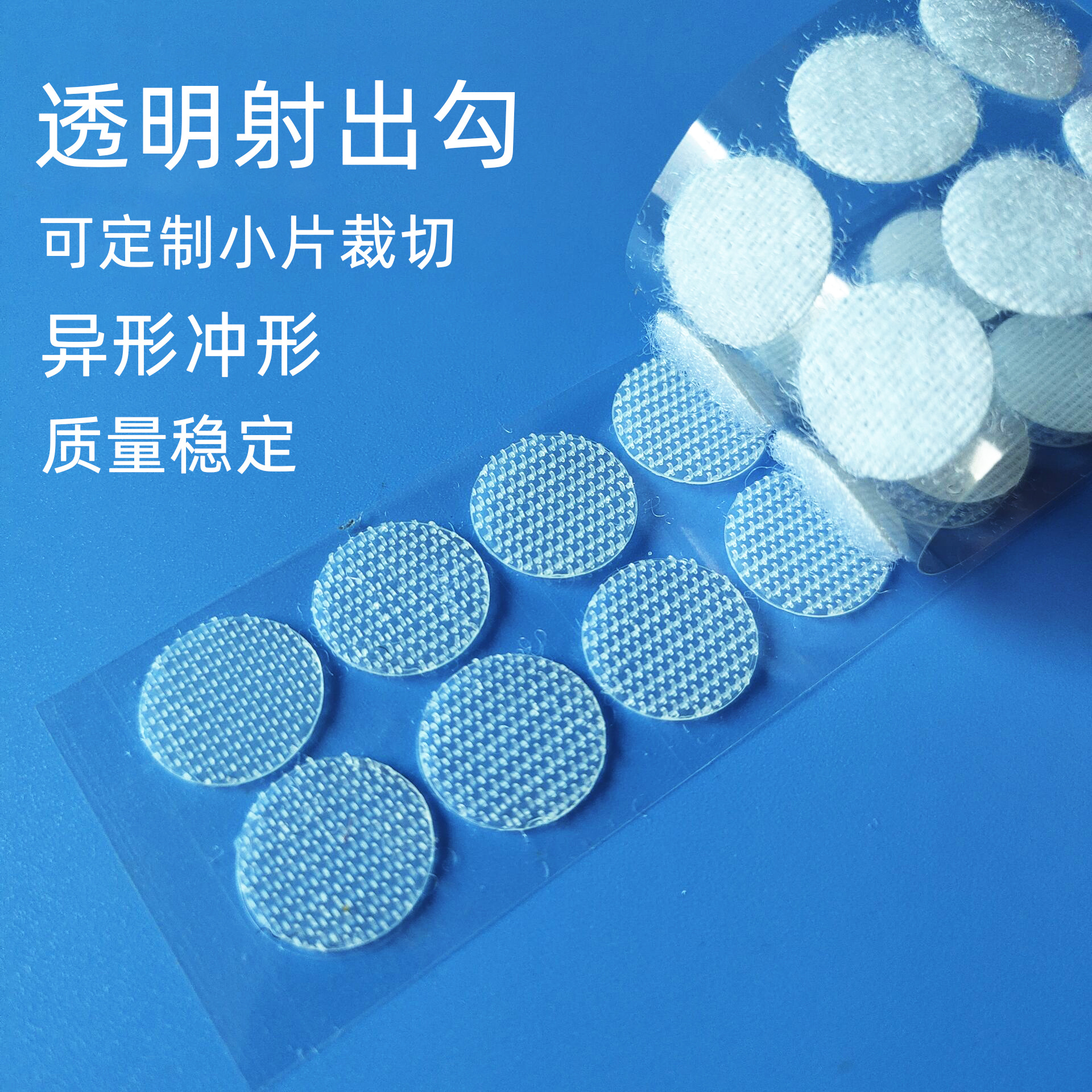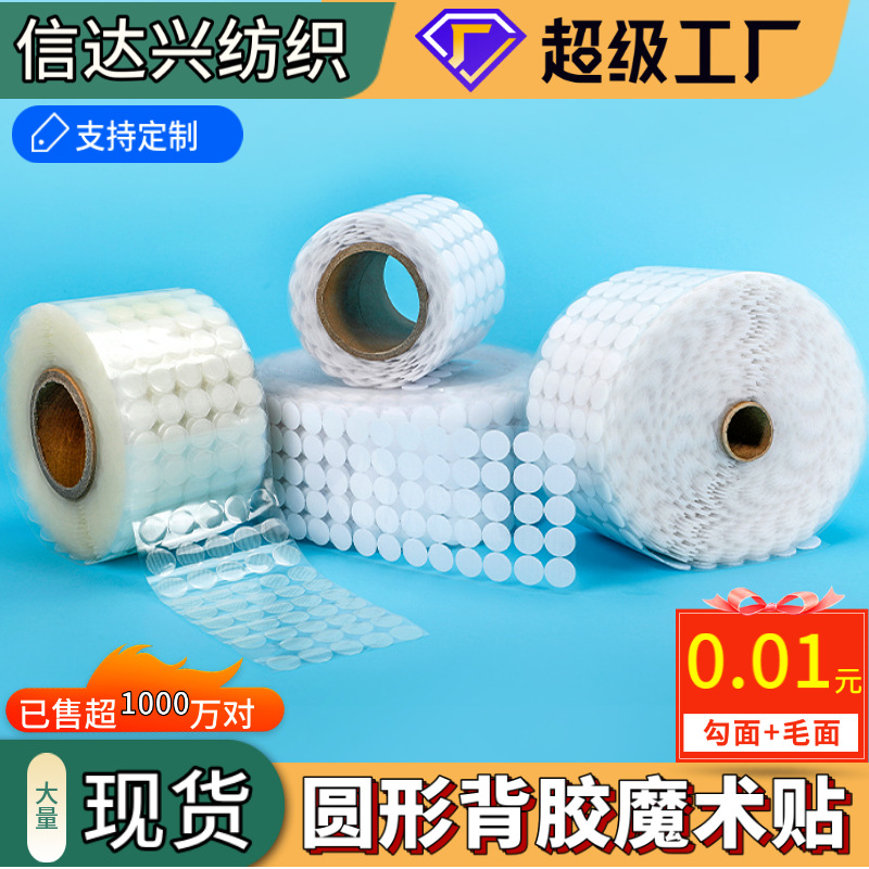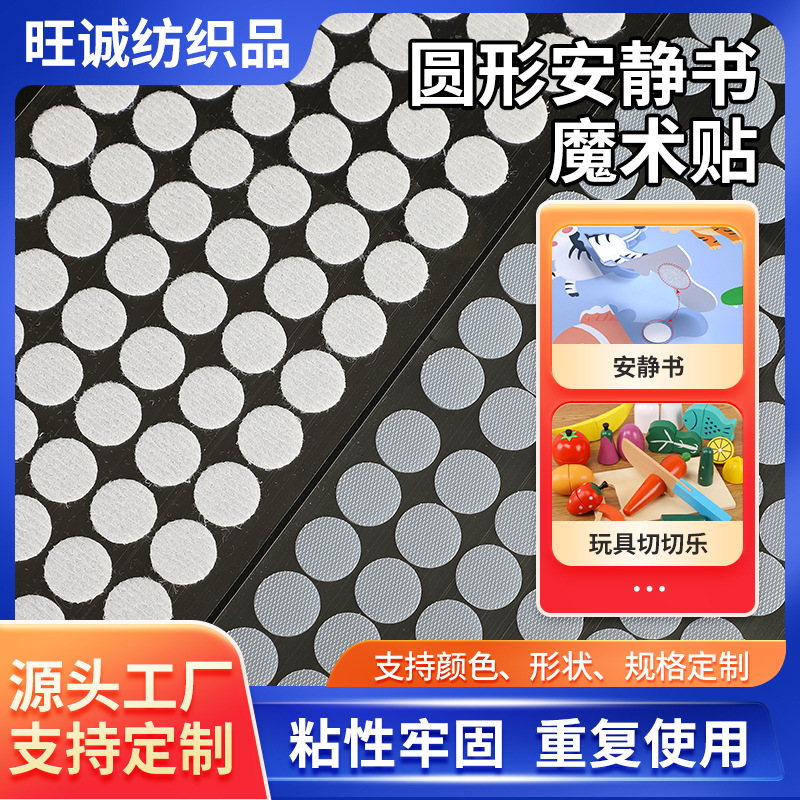 透明射出成形静音ブック用小丸型粘着式マジックテープ卸売玩具紙箱用粘着丸型マジックテープ
