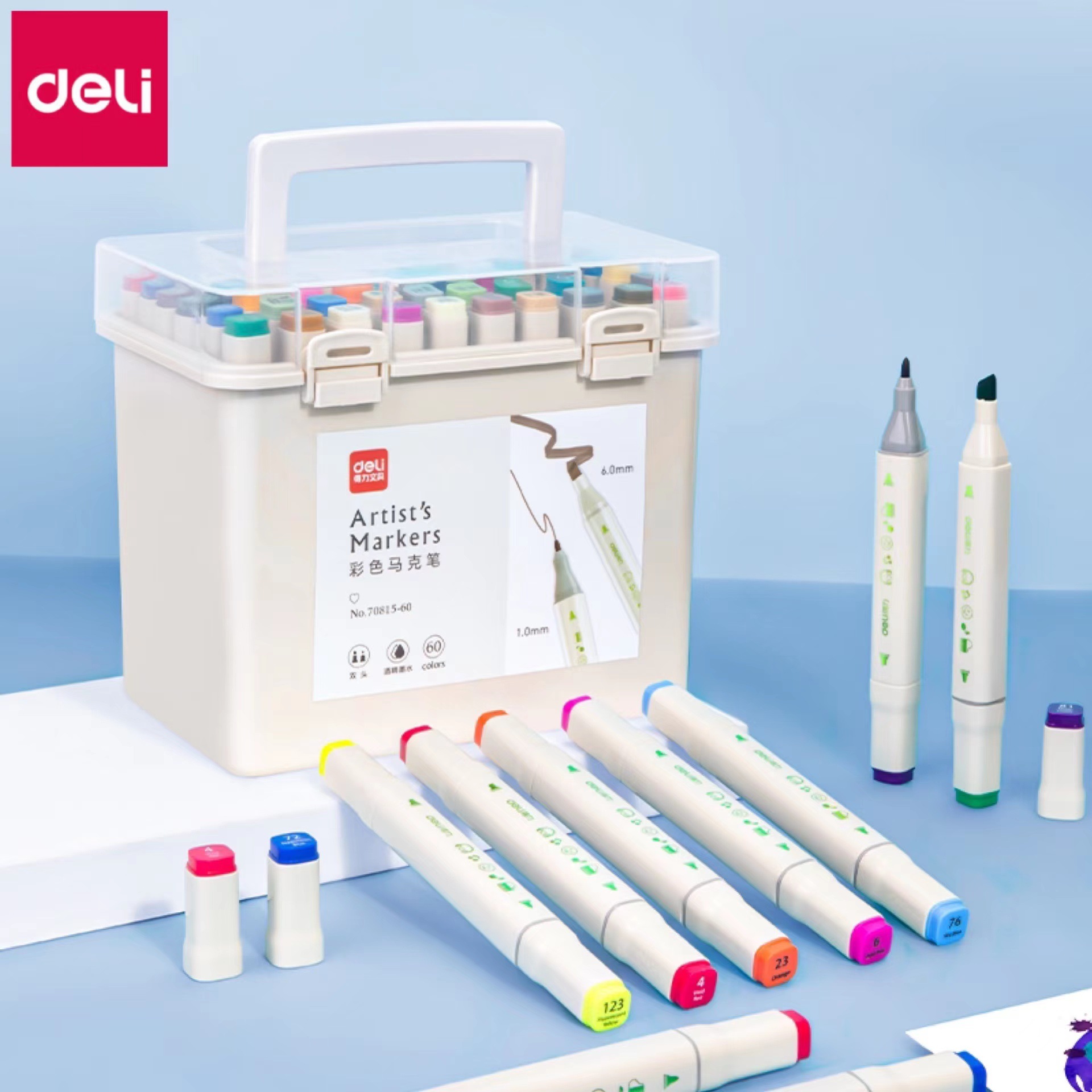 得力70816-60色マークペン水性マークペン双頭マークペン水洗いマークペン落書きペン